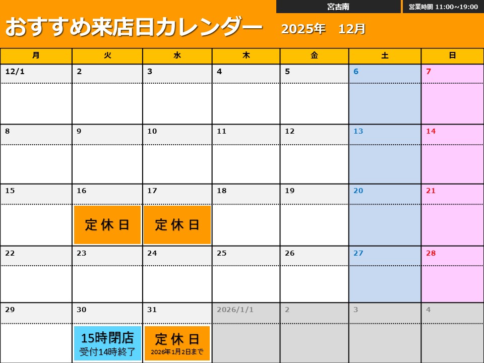 | 定休日 | 営業日カレンダー |
